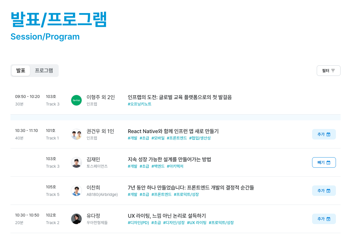 이게 인프콘의 메인 컨텐츠라고 생각하는데, 발표 및 프로그램이다.