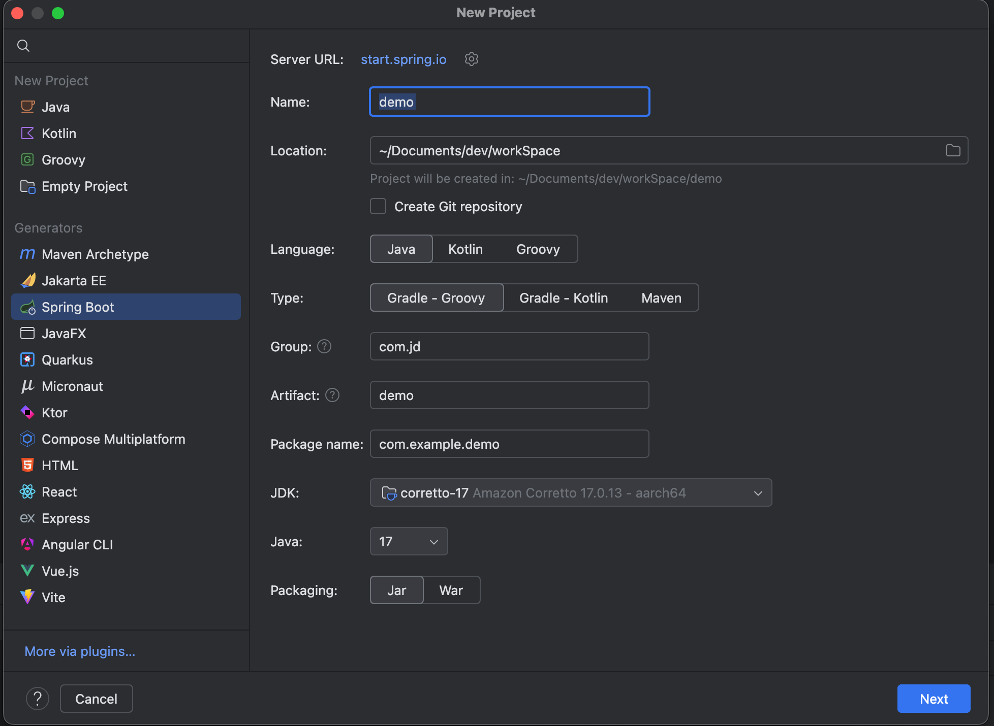 프로젝트는 Gradle, Maven 기반의 Java프로젝트로 생성하면 됩니다.