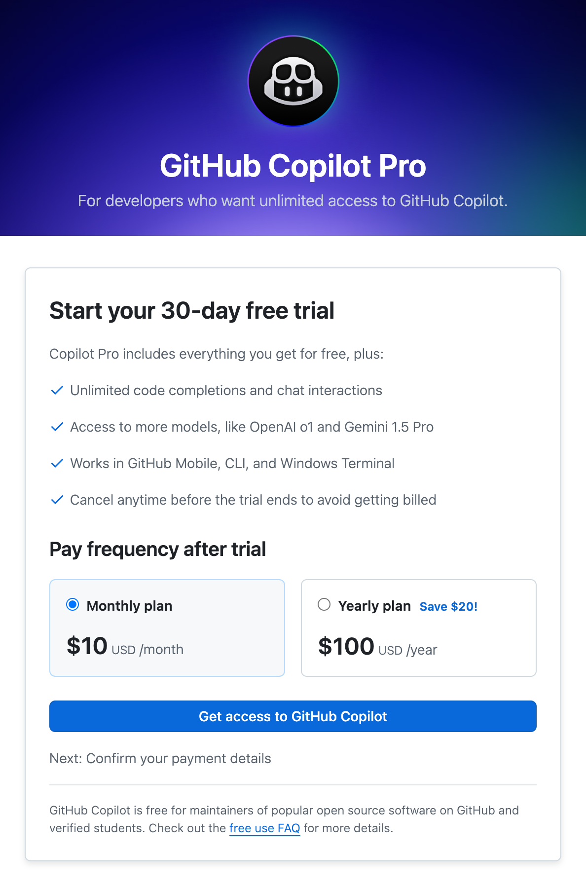 얼마전 GitHub Copilot의 무료플랜이 출시되어 사용해보고, 괜찮다고 생각하여, Pro버전을 신청해서 더 사용해보려고 합니다.