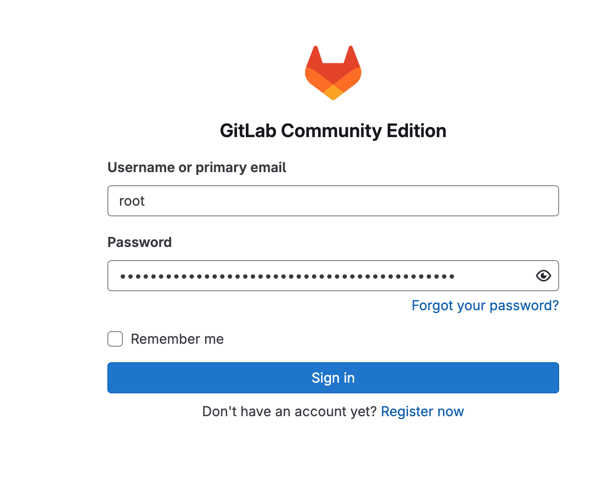 위와 같이 컨테이너 실행 후, 컨테이너가 완전히 실행될때까지 기다린 후, http://localhost/ 로 접속을 해보면 정상적으로 gitLab화면을 확인할 수 있다.