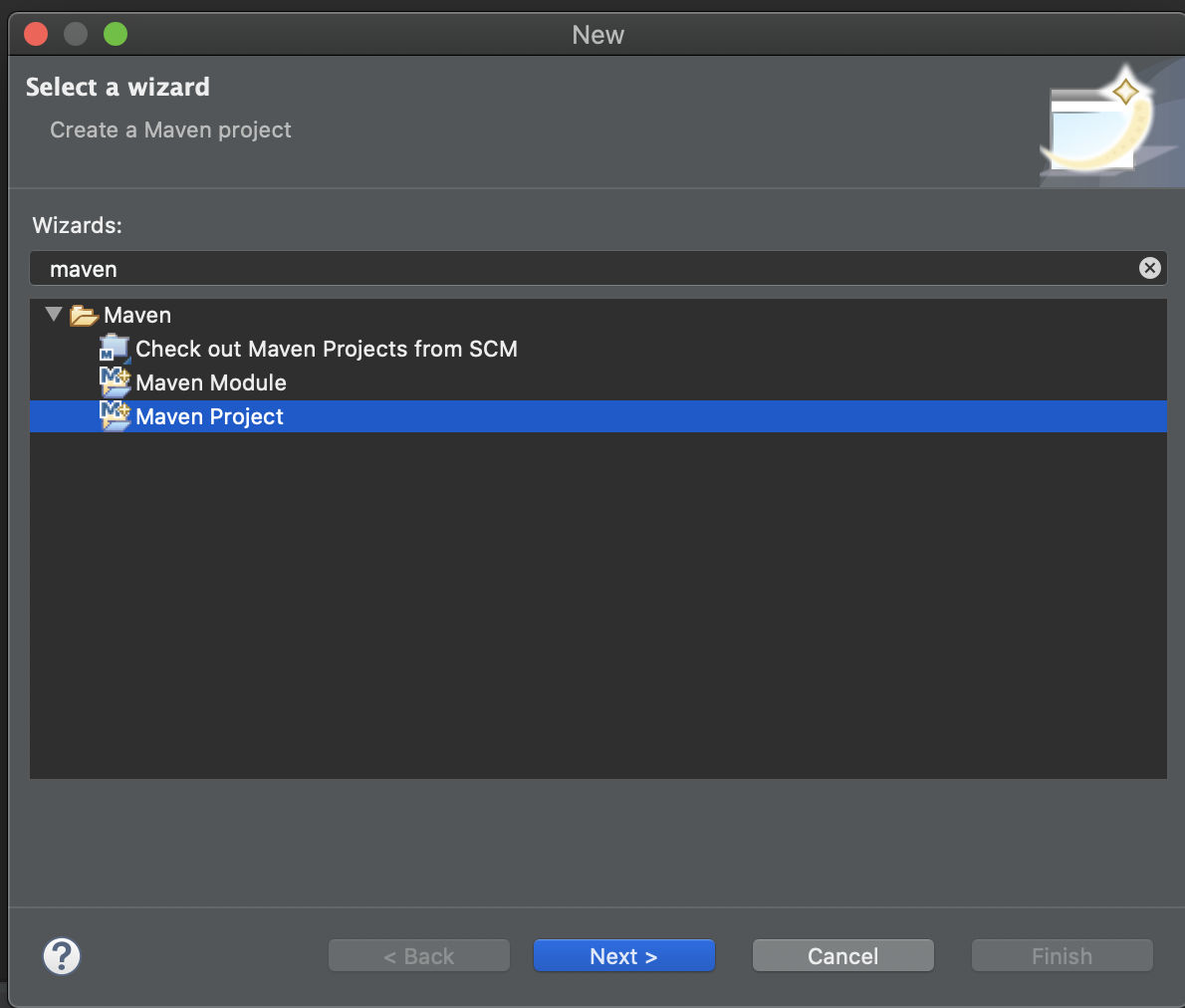 일단 이클립스에서 프로젝트 생성을 누르고 검색란에 Maven을 검색하거나 직접 찾으셔도 됩니다.