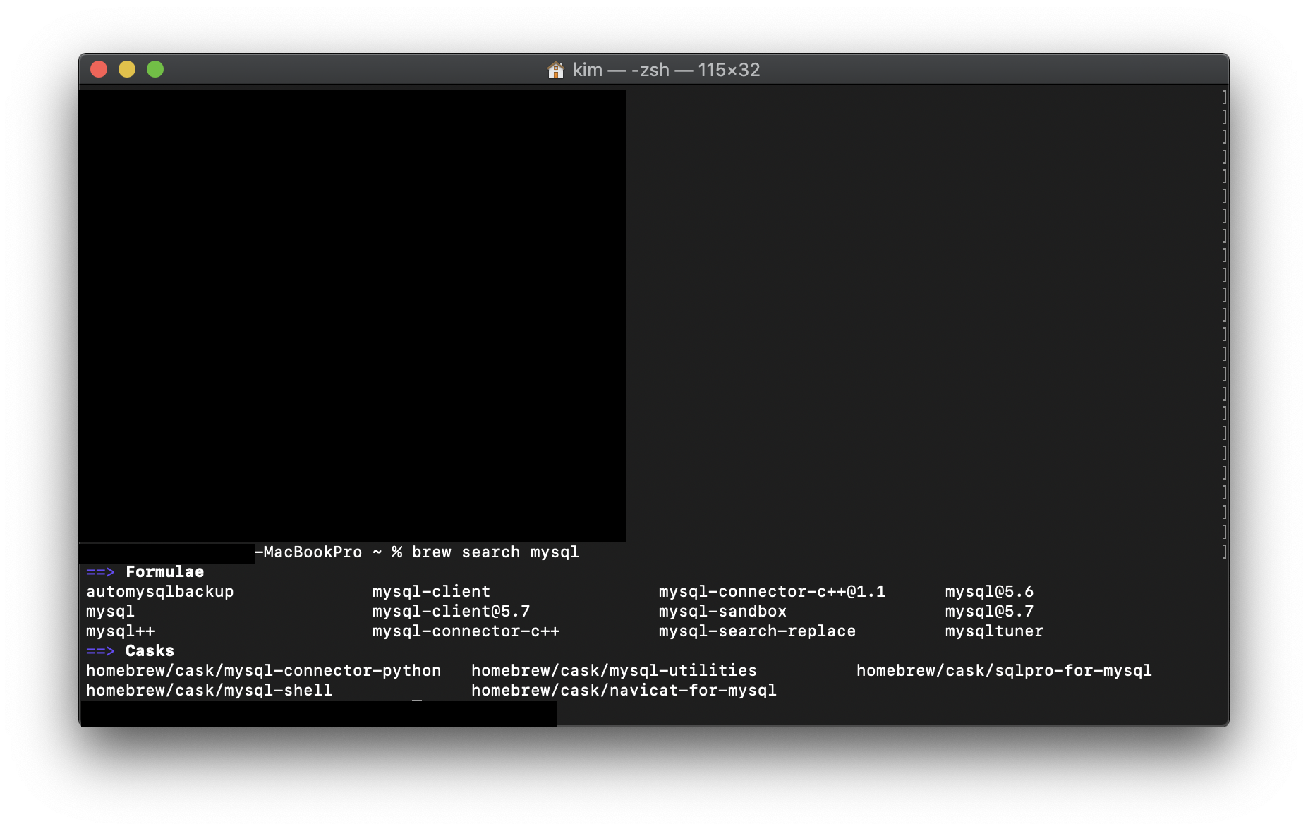 터미널에 brew search mysql을 입력해 줍니다.