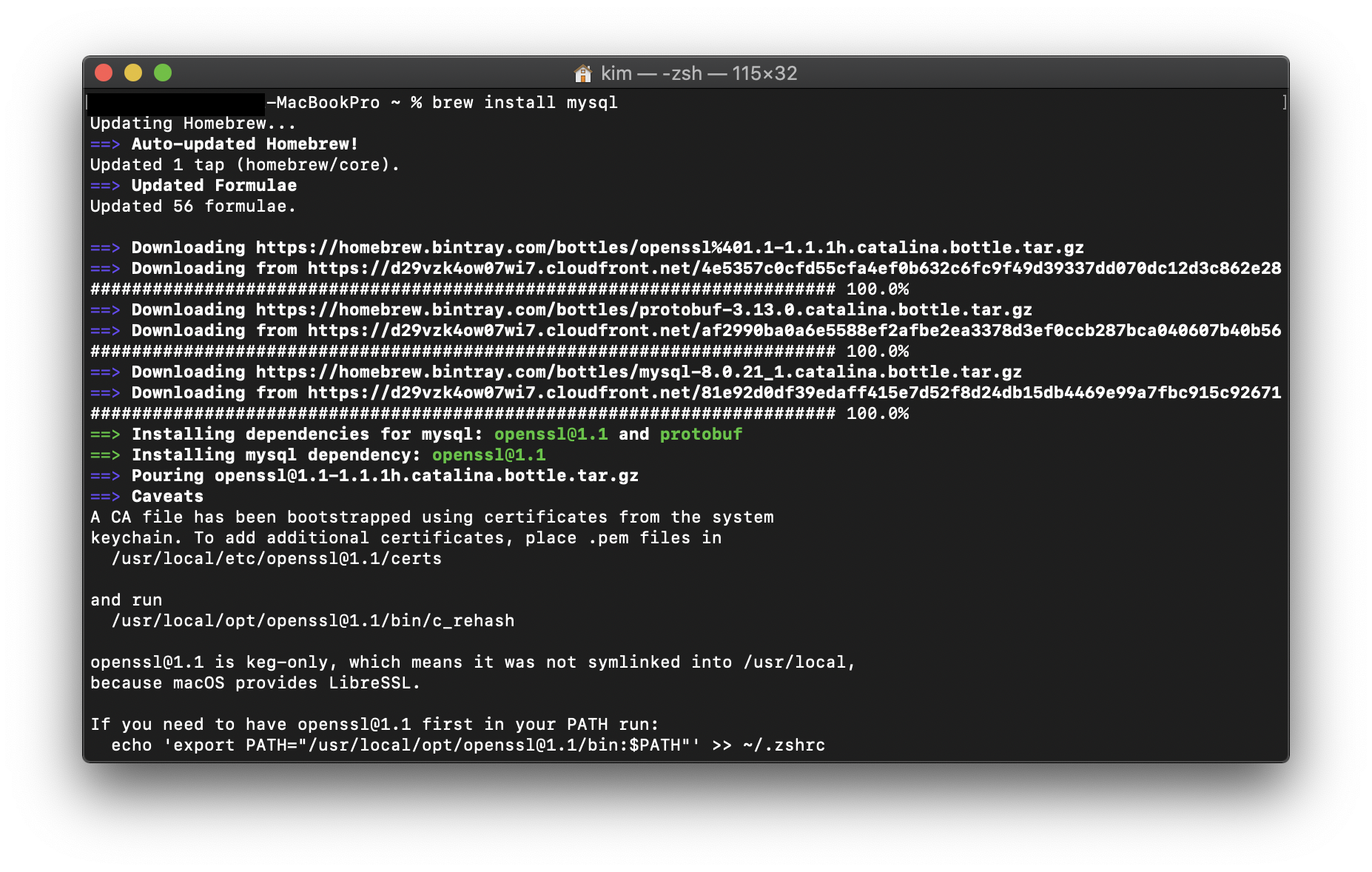 아래와 같이 brew install 명령어를 이용해서 설치를 진행해주시면 되겠습니다.