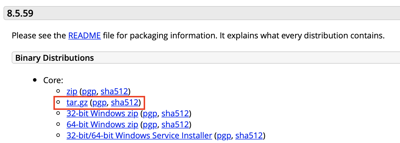 맥OS 환경인 경우 : tar.gz