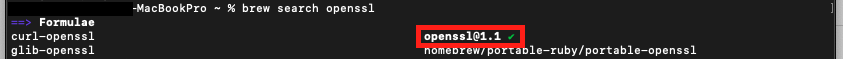 검색 결과에서 openssl@1.1을 설치해 주면 됩니다.