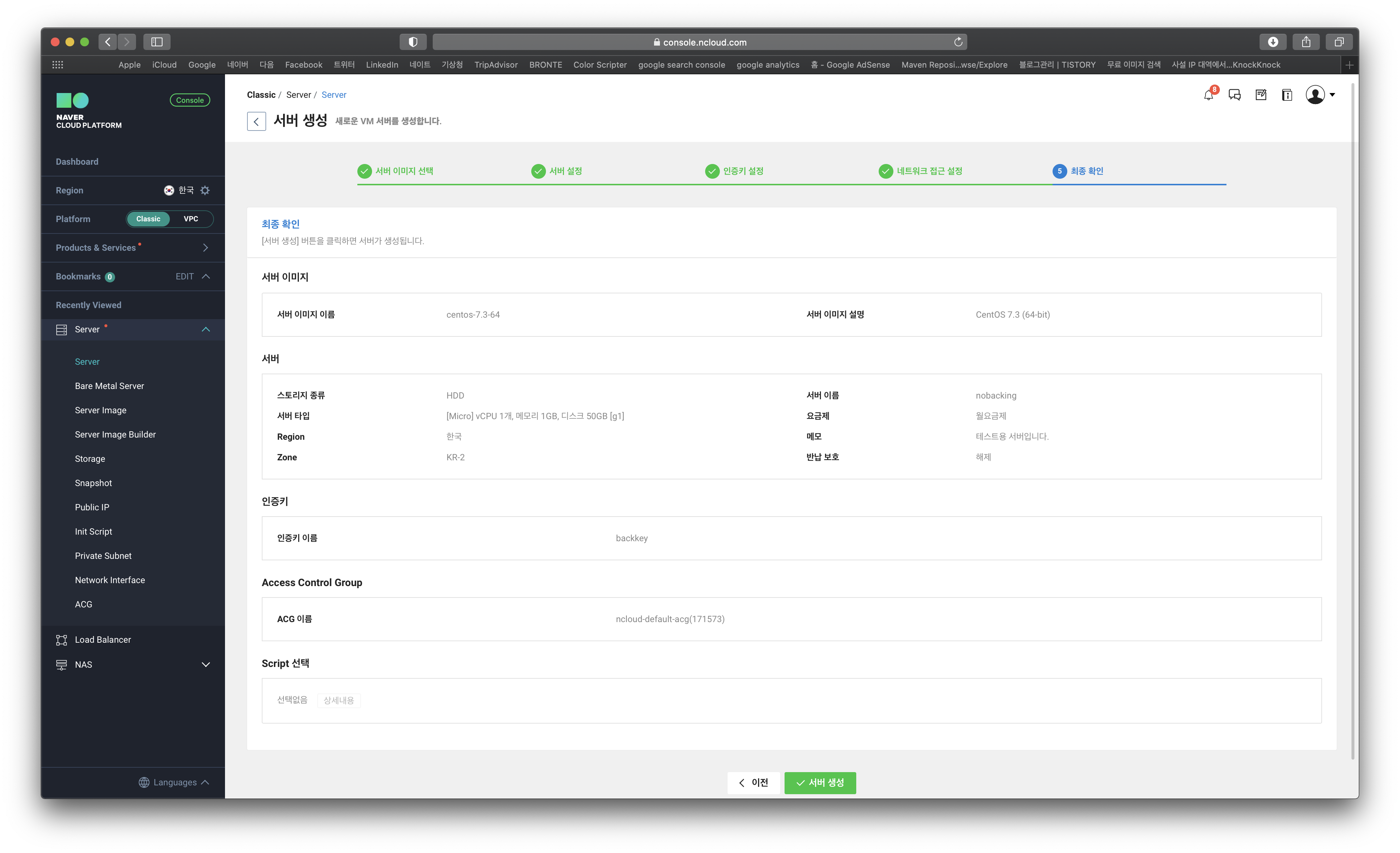 모든 선택이 완료되었으면 서버생성버튼을 클릭하면됩니다.