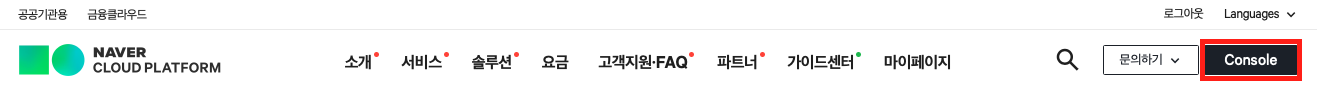 결제정보등록을 완료했으면, 메인에서 콘솔 메뉴를 선택합니다.