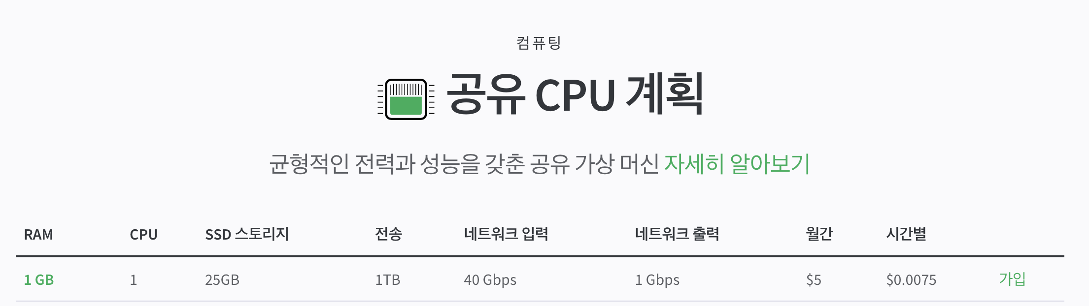타 서비스들에 비해 가격도 저렴하고, 서버 스팩도 테스트용으로 사용하기 적절하다고 생각됩니다.