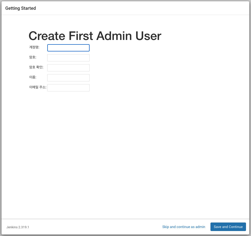 초기 세팅이 완료되면 계정을 생성할 수 있는 화면이 나타납니다.