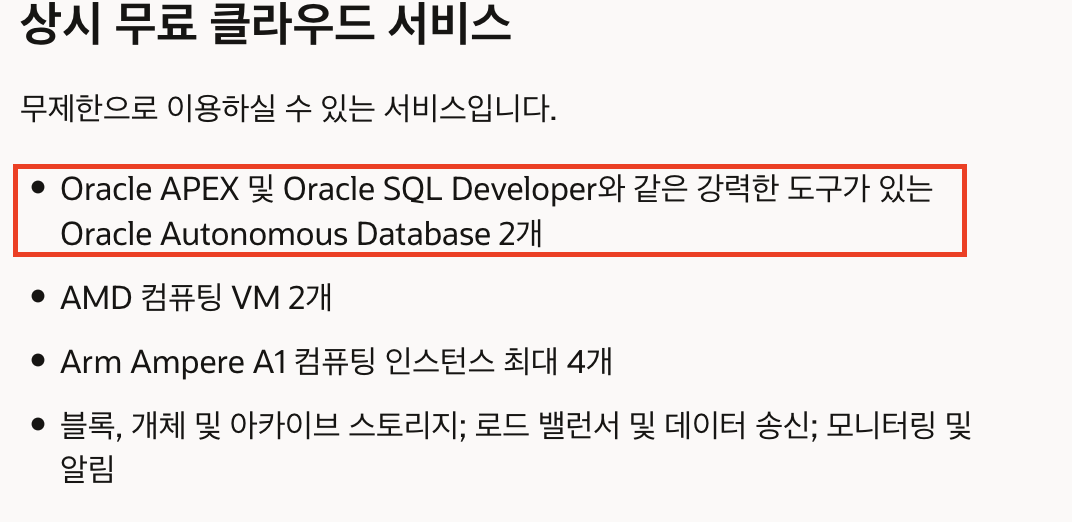 오라클 클라우드 서비스를 사용하게 되면 2개의 DB를 무료로 사용할 수 있습니다.