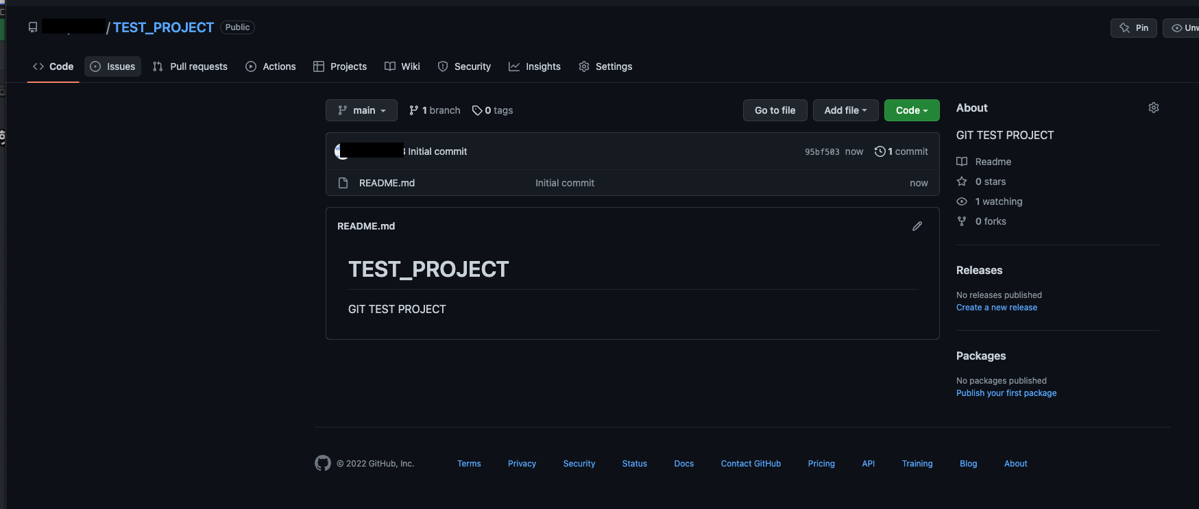 프로젝트 명은 Project1/README.md로 입력하였고,