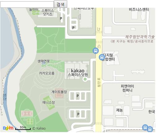 일단 기본페이지는 카카오본사 위치를 찍어놓은 듯 합니다. 거기에서 내가 원하는 곳을 검색하면