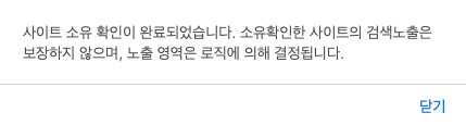 적용을 완료하고, 다시 네이버 서치 어드바이저 페이지로 돌아와 소유확인 버튼을 클릭해줍니다.