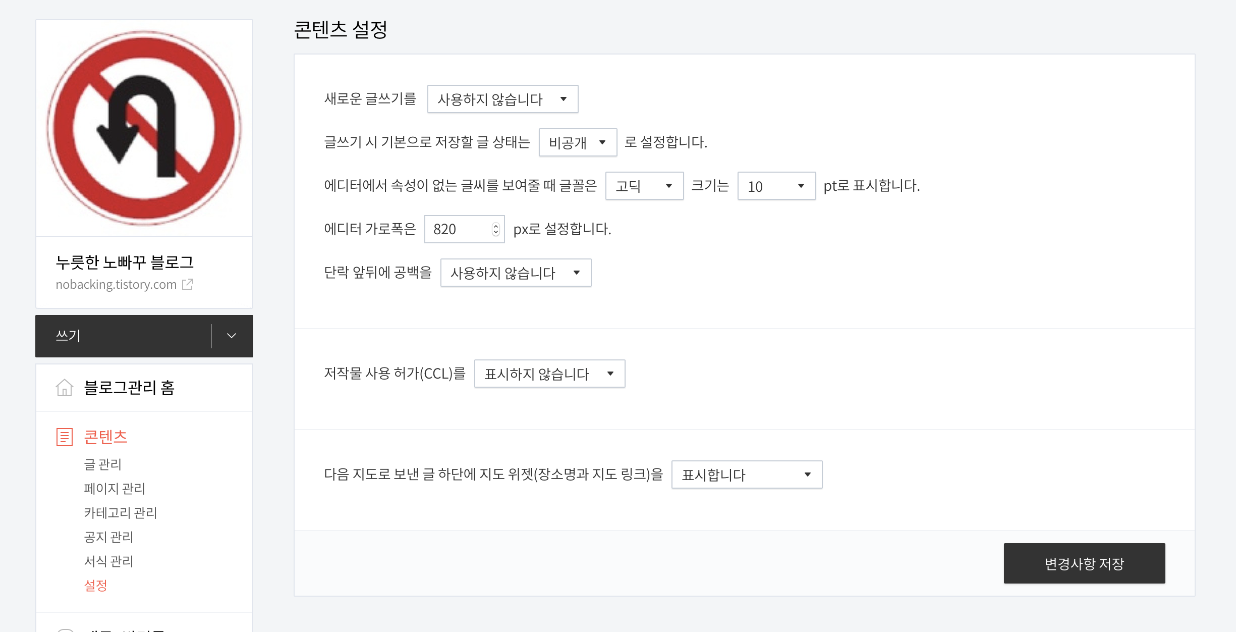 등록하기전 일단 관리자메뉴 -> 콘텐츠 -> 설정에서 새로운 글쓰기를 사용하지 않습니다를 선택하고 변경사항을 저장해줍니다.