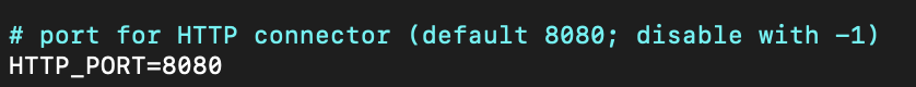 위의 명령어를 실행해보면 아래와 같이 포트정보가 있는 부분을 찾아볼 수 있는데, 이 정보를 변경하여 이용하고 싶은 포트로 변경하면 됩니다.